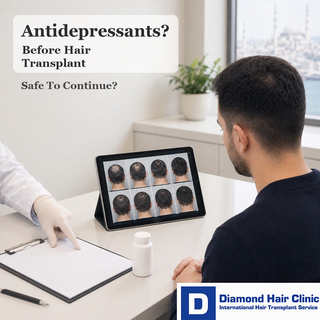 Yes, many patients can have a hair transplant while taking antidepressants, but the medication and the reason for taking it must be discussed before surgery. You should not stop antidepressants on your own to make surgery easier. The safe plan depends on the medicine, your mental health stability, other medications, blood pressure, sleep, anxiety level, and whether your prescribing doctor has any concerns.
