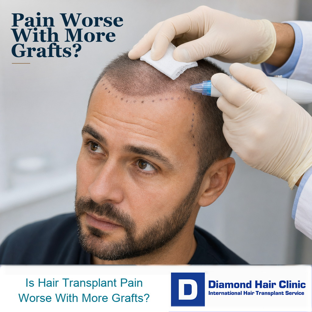 So if you ask whether more grafts means more pain during the operation, my answer is this. More grafts may mean a larger area to numb, but once the area is properly numb, the patient should not feel pain with each graft.