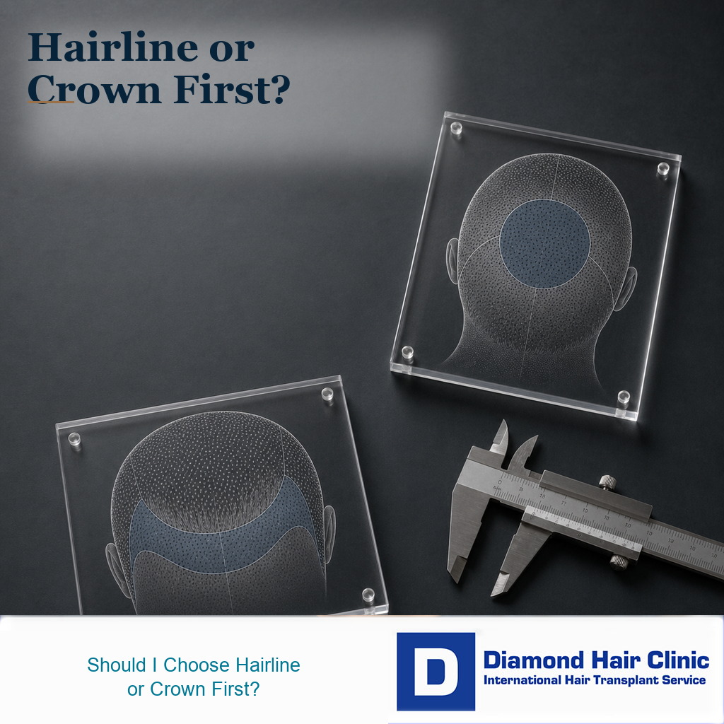 If both areas need work and donor hair is limited, I usually prioritize the hairline and frontal mid scalp before the crown. The reason is simple. The front frames the face and usually gives the strongest visible return for each graft. The crown can still be important, but it often needs careful timing, medical stabilization, and sometimes a second session after 12 to 18 months when the first result can be judged properly.