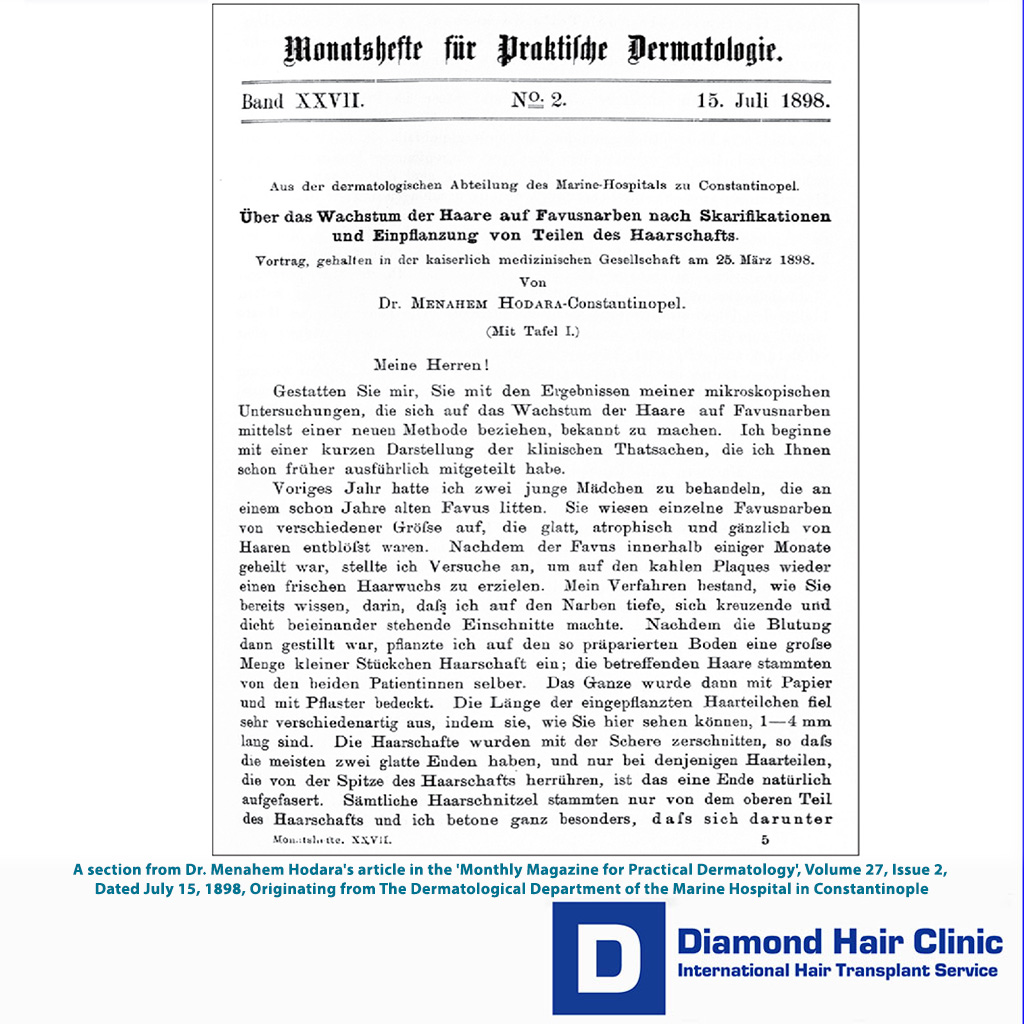 That early conceptual door became much more clinically meaningful in 1897, when Ottoman dermatologist Dr. Menahem Hodara carried out one of the earliest genuine hair restoration experiments in Constantinople, today’s Istanbul.