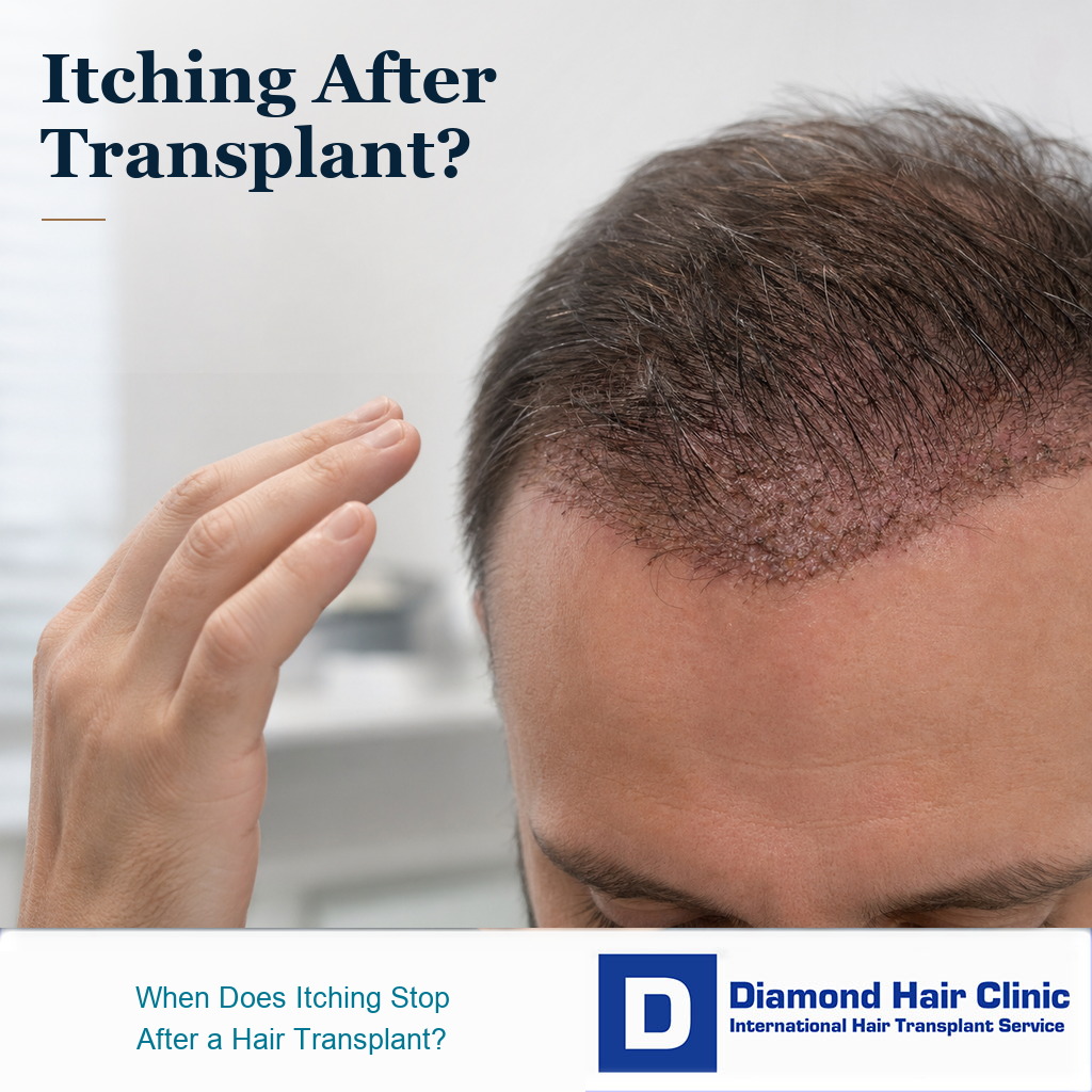 The practical answer is this. Itching after hair transplant is usually strongest during the first 10 to 14 days while crusts dry, loosen, and the skin begins to settle. Donor area itching can continue or return for several weeks, often around 4 to 6 weeks, especially when the hair is short and the skin is dry. Do not scratch the recipient area during the first 2 weeks. If itching comes with spreading redness, heat, pus, fever, severe pain, thick wet scabs, black tissue, or worsening swelling, send clear photos to your clinic the same day.